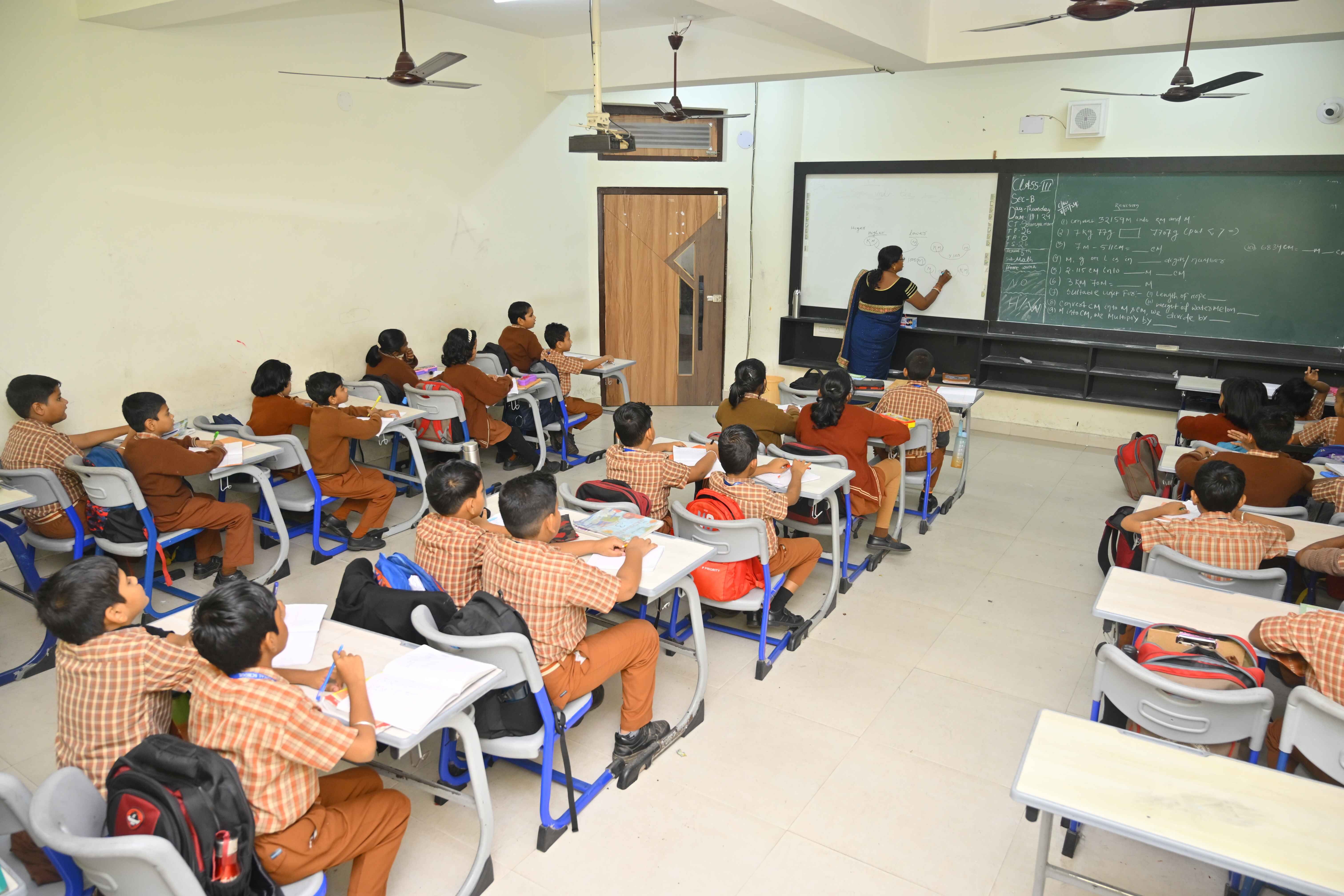 The primary school classroom looks more like a curiosity studio-with interactive learning aids, colourful display boards, a class library and activity zone. The wefl-ventilated and brightly lit classrooms are equipped with comfortable and ergonomically designed seating arrangements. Academic development apart, they begin to recognize and build their natural talents in our scientifically designed sports facilities and fine arts studios. The main focus of the curriculum during these formative years revolves around: